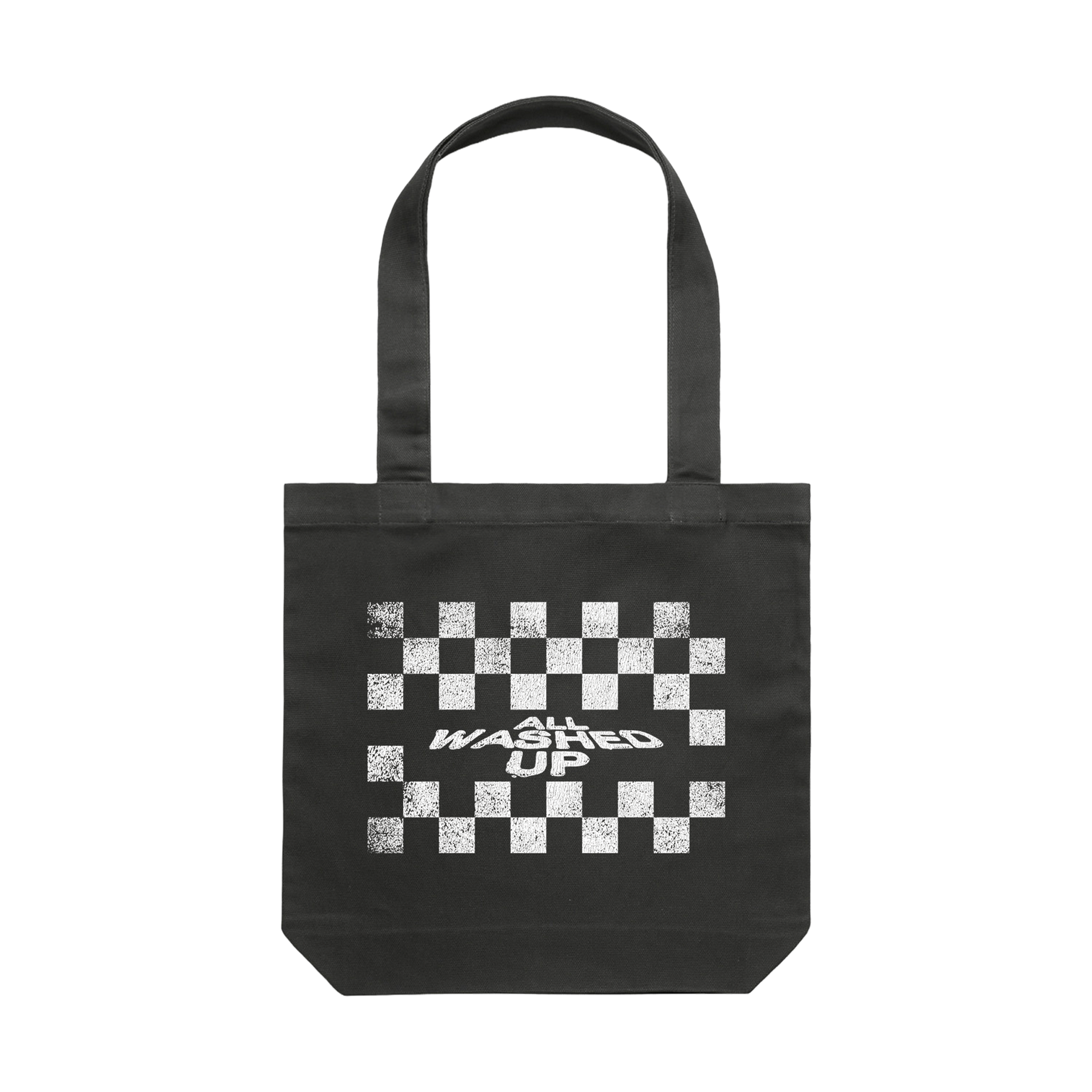 "All Washed Up" design on a coal colored tote bag.